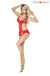 A super red-hot crotch less body in sheer stretchy comfortable material decorated in floral embroidery. In a halter neck style with cut out back and sides adorned with a pretty ribbon bow and edged with a scalloped hem. Stretchy straps and the neck can be fastened with a clasp. Tied at the back with straps and the straps at the crotch are adjustable. This is a crotch less body so be aware! Item arrives packaged in a sleek branded Provocative box.