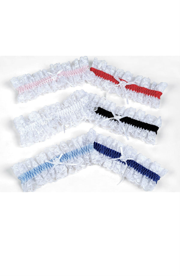 Pretty lacy leg garter with soft satin trim and white lace on top and bottom.